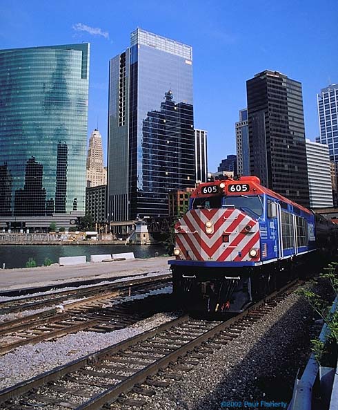 A short time later, METRA F40C 605 thunders out of Union Station,