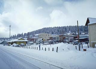| Approaching Truckee, the snow began to come down in clumps. Below us on the