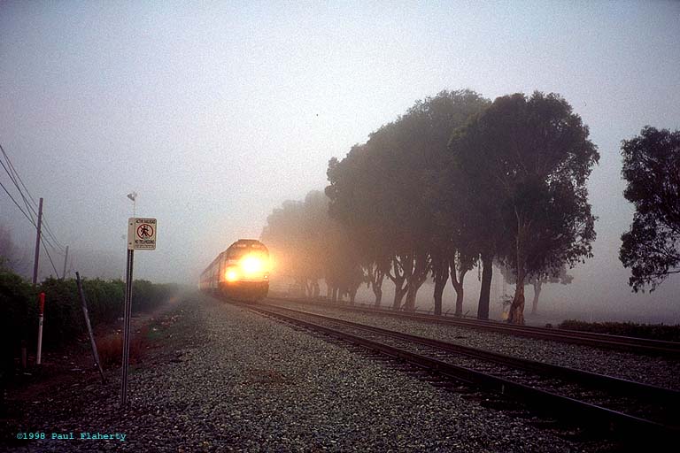 Fog turns to rain, and newly rebuilt Caltrain 910